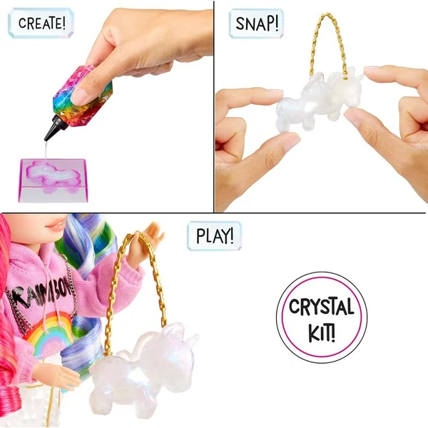 Cette poupée Creative Crystals – Amaya Raine est pour tous ceux qui souhaitent allier créativité et dernières tendances de la mode. Crée plus de 5 accessoires en cristal pour la poupée à l’aide de résine et de moules inclus dans l’emballage. Tu peux fabriquer une bague pour toi.
