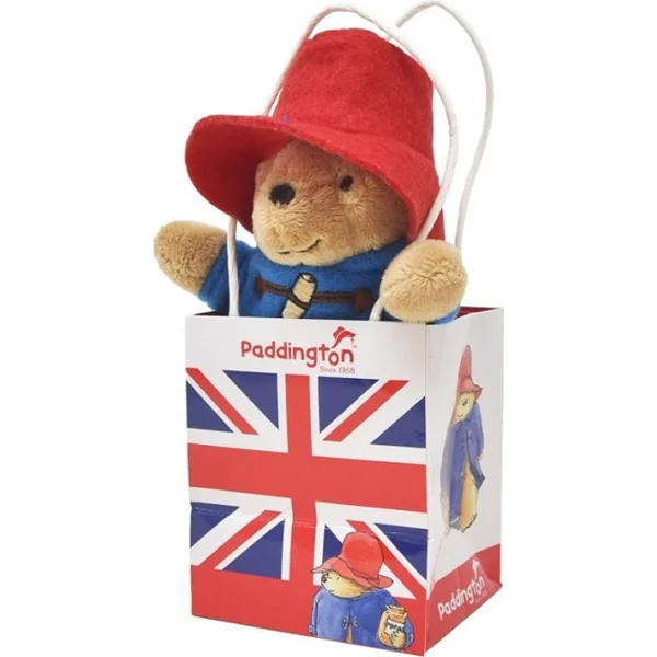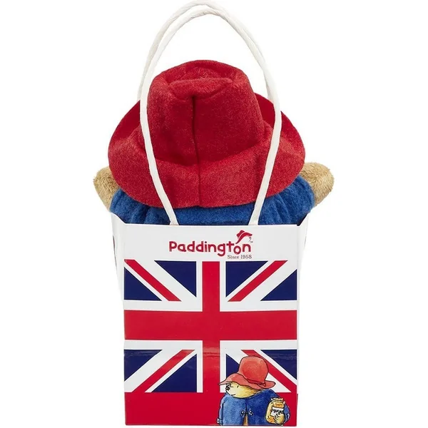 Il s’agit d’un emballage cadeau, dans lequel Paddington est glissé dans un sac coloré avec le drapeau du Royaume-Uni et les illustrations inimitables de Peggy Fortnum.