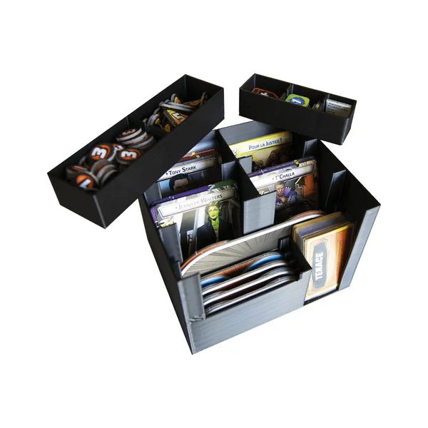 Marvel Champions™ est un jeu édité par Fantasy Flight Games. Gozu Zone propose de sa propre initiative des rangements compatibles avec ce jeu et ses extensions, qui demeurent la propriété de l’éditeur. Ce dernier n’assume aucune responsabilité quant à nos produits.