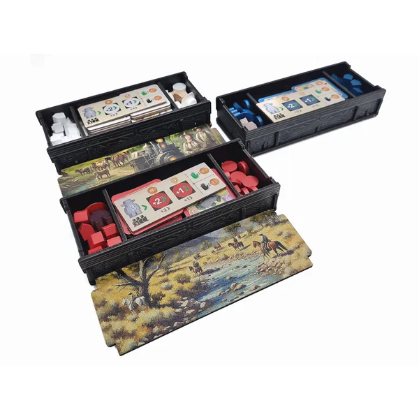 L’insert e-Raptor compatible avec Great Western Trail 2e édition + extension Rails to the North est un accessoire indispensable pour organiser et améliorer votre expérience de jeu.
