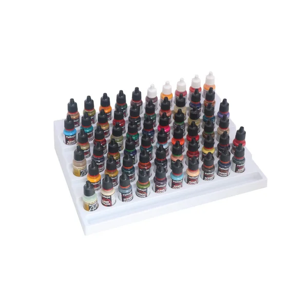 Le présentoir peut contenir 60 bouteilles de type Army Painter, Vallejo, etc, Il est prêt à l’emploi sans avoir besoin d’être assemblé et est livré avec un couvercle pour protéger les bouteilles de la poussière et de la saleté.