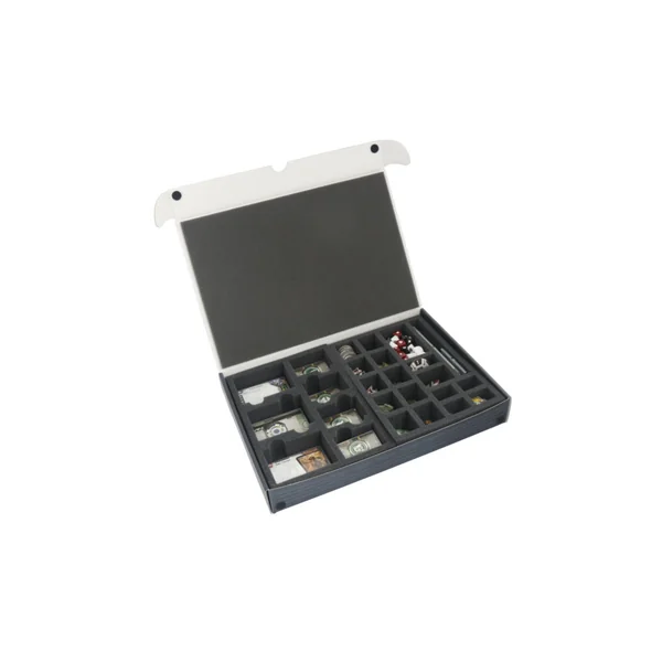Ce plateau en mousse est composé de 3 emplacements pour les grandes cartes et de 4 emplacements pour les mini-cartes. Il permet de transporter toutes les cartes dans des pochettes.