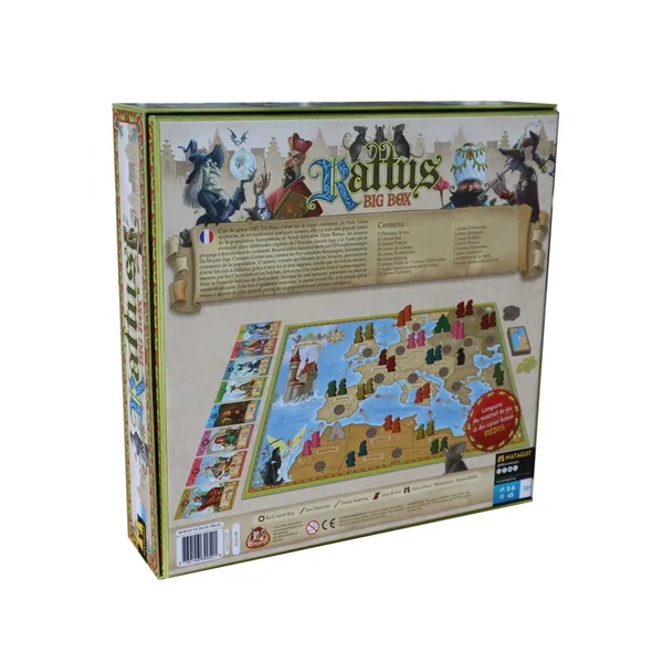 Rattus – Big Box comprend non seulement plusieurs extensions et promos déjà parues, mais aussi du matériel inédit, des modules et des cartes bonus. Plus précisément, cette nouvelle édition de la gamme Rattus contient tout le matériel du jeu de base et des extensions Pied Piper, Africanus et Academicus. Du nouveau contenu supplémentaire est inclus, et les joueurs peuvent ajouter les nouveaux modules « Guildes et Auberges » et « Bonus » pour créer encore plus de variété et de défi.