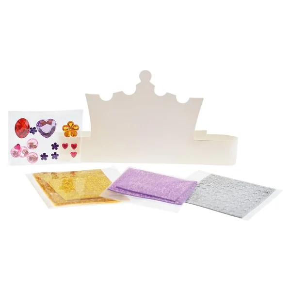 Pour créer toi-même différentes couronnes. Avec 4 couronnes en carton dont 1 blanche pour réaliser ton propre design, 5 planches adhésives de mosaïques scintillantes, et 15 gemmes autocollants. Petit livret d’instructions inclus.