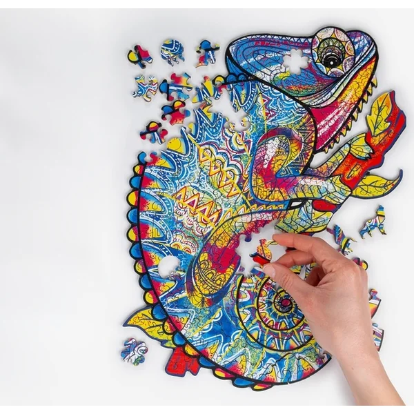 Le puzzle en bois RECENTTOYS Caméléon est une excellente idée de cadeau pour les amateurs de puzzles, de motifs colorés et de jeux de design. L’assemblage aide à se déconnecter des écrans, à exercer la patience et à profiter de la joie de voir le motif se former progressivement.
