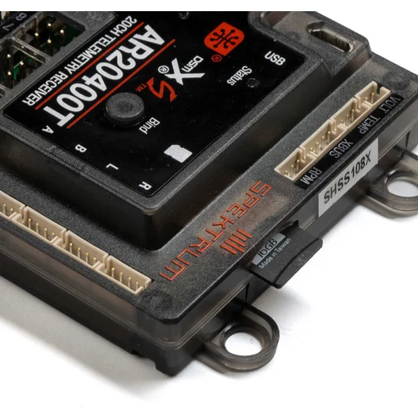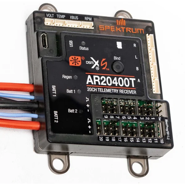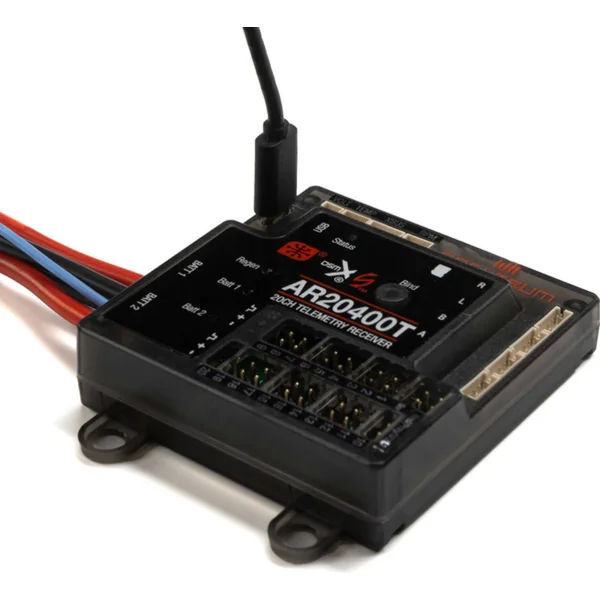 Spektrum ™ AR20400T PowerSafe ™ est un récepteur 20 canaux riche en fonctionnalités avec télémétrie intégrée à pleine portée. Le récepteur est conçu pour de grands modèles avec plusieurs servos et une consommation de courant élevée. Le récepteur dispose d’une alimentation double – redondante avec deux batteries et des câbles 13AWG et connecteurs IC3. Cela permet d’alimenter en toute sécurité des systèmes à haute intensité directement à partir du récepteur.
