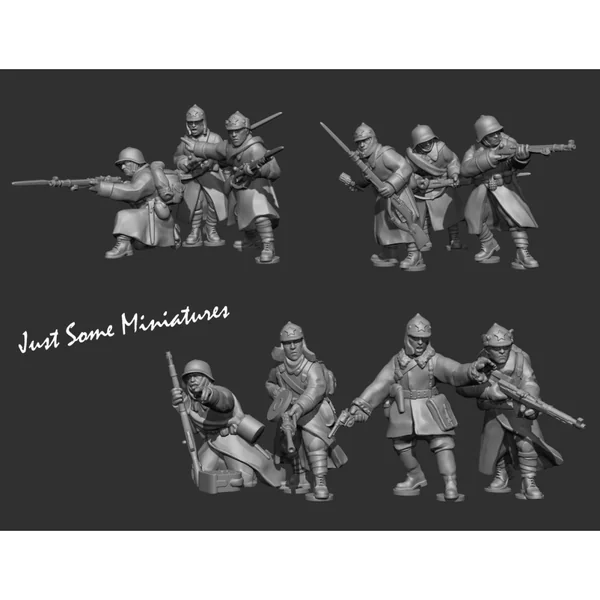 Section de dix fantassins soviétiques en manteaux, imprimées en résine.