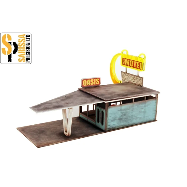 L’évolution du réseau routier américain dans les années 1920 a banalisé les voyages longue distance. Les motels offraient un hébergement peu coûteux et pratique au voyageur fatigué, et ce kit de réception est un élément essentiel de votre motel pour votre table de jeu.