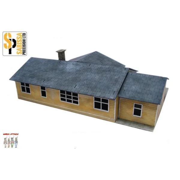Avec son design rétro des années 60, ce ranch résidentiel est parfait pour les jeux de table ou les dioramas ayant pour cadre l’Amérique de la guerre froide moderne, pulp ou alternative. Il dispose même d’un garage sur le côté gauche (LHS) du bâtiment où vous pourrez garer votre voiture rétro !