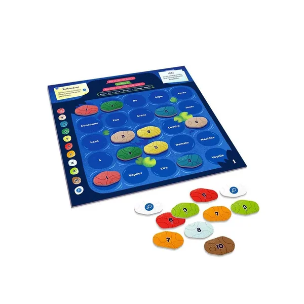 Chaque énigme est constituée d’un dialogue dont il faut découvrir la dernière phrase pour comprendre l’histoire, Pour la trouver, le ou les joueurs (en collaborant) doivent résoudre une grille de 25 mots dont la plupart doivent être cachés par des « galets ». Pour les placer, les joueurs doivent trouver des couples de mots obligatoirement alignés. Chaque couple de mots amène par ricochet (association d’idées) au couple de mots suivant, jusqu’à ce que tous les galets soient posés. A la fin, les mots encore visibles (de 3 à 6) présentent un rébus drôle qui, une fois lu à haute voix dans le bon ordre, permet aux joueurs de découvrir une phrase ! La dernière du dialogue… Le contexte et des indices permettent aux joueurs de trouver le bon ordre. En cas d’erreur de parcours, ils doivent retourner en arrière ou recommencer, en regardant si besoin les réponses fournies.