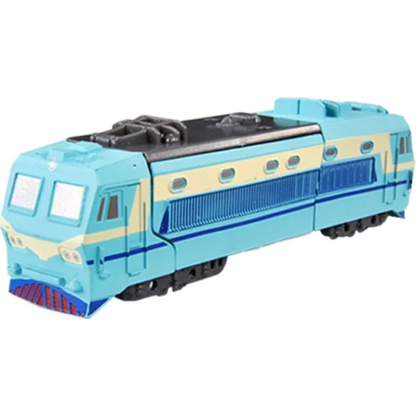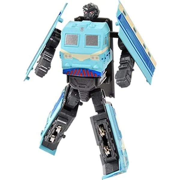 Incroyable mini robot en métal bleu, que tu peux facilement transformer en locomotive !