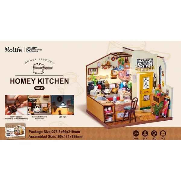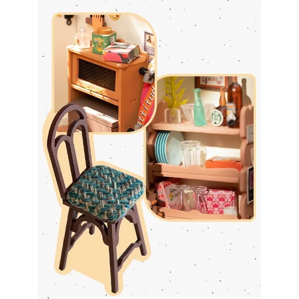 Nous vous présentons le modèle miniature de cuisine « Cuisine Douillette », qui apportera joie et amusement aux enfants comme aux adultes. Ce modèle de cuisine est aussi accueillant et chaleureux que vous l’attendriez de votre propre maison. Avec 196 pièces à assembler, la Cuisine Douillette vous captivera pendant 10 heures de montage. L’enquête, nous vous la laissons – quel hôte pensez-vous qu’il y a ici ? Pourrait-il s’agir de boulangers habiles ou de chefs cuisiniers ? Ou peut-être des amateurs de thé qui profitent d’un après-midi paisible dans la chaleur de leur foyer ? Le modèle est personnalisable et vous permet de créer votre propre version du style de vie que vous avez toujours désiré.
