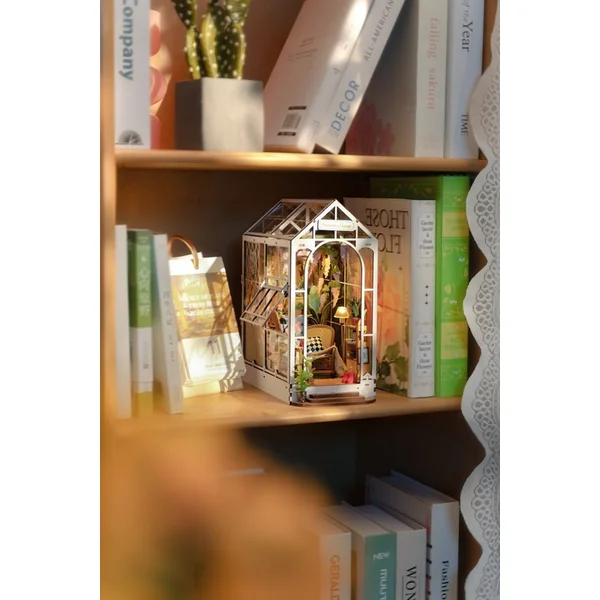 Ce support décoratif pour livres ressemble à une mini-serre – et la nuit, il brille même grâce aux lumières LED intégrées. Le puzzle 3D Maison de Jardin de Rolife n’est pas seulement un support pour livres – c’est aussi une expérience complète de construction et de décoration. Si vous êtes un amoureux des livres, une âme créative ou si vous aimez les décorations d’intérieur uniques, cette maison de livres est faite pour vous !