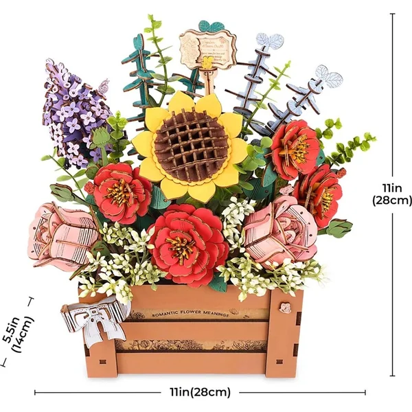 RoboTime Puzzle 3D en bois Jardinière avec fleurs