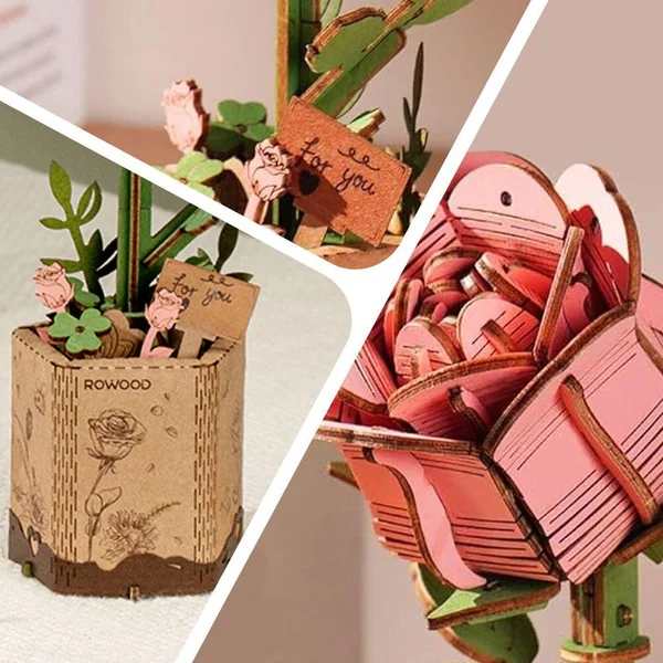 TW041 représente une rose rose dans une forme de puzzle en bois complexe. Connu pour son apparence romantique et gracieuse, ce modèle est parfait pour exprimer l’amour, la gratitude ou l’élégance.