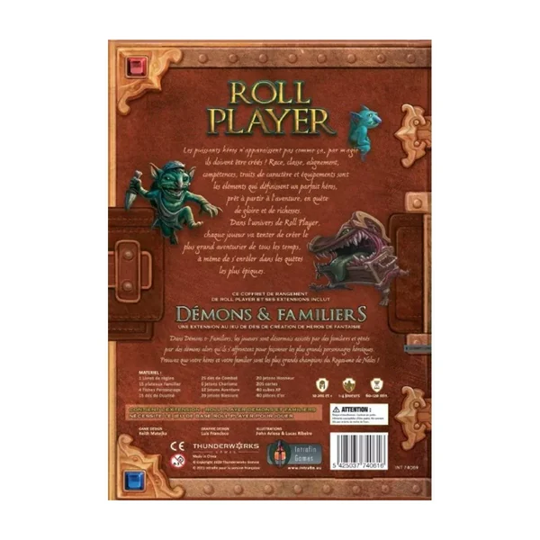 Roll Player : Démons et Familiers Big Box – Extension : Une deuxième vague de monstres envahit le royaume! Les sbires ennemis déferlent sur les campagnes, des démons marchant à leurs côtés. Pour préparer ses forces face à cette nouvelle menace, le Roi Aron a demandé à de mythiques créatures de rejoindre la Garde du Roi et de servir en tant que familiers. Forts de ces nouveaux compagnons, les héros de Nalos doivent mettre un terme à l’invasion des Draguls.