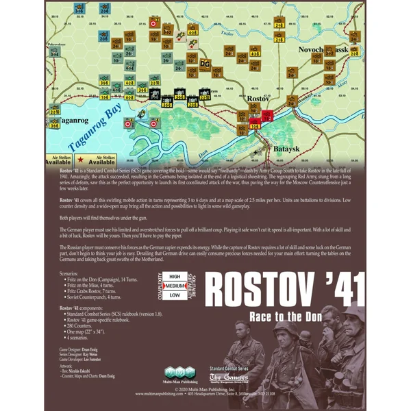 Rostov ’41 est un jeu de la série Standard Combat Series (SCS) couvrant la course audacieuse – certains diraient « téméraire » – de l’Armée du Groupe Sud pour prendre Rostov à la fin de l’automne 1941.
