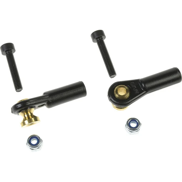 Le corps en nylon a une longueur de 27 mm, se visse sur le filetage de la tige M4, les pièces en laiton des axes à rotule ont une longueur de 9 mm et un trou de 3 mm, vis M3x15 mm, VH. (2 pcs).