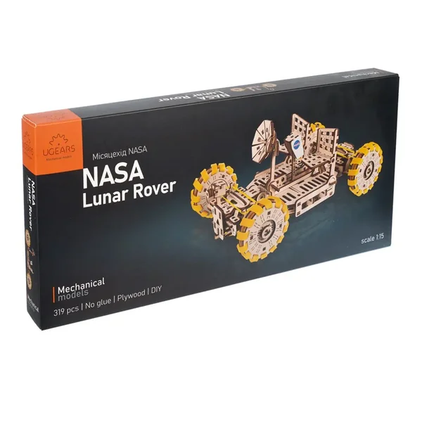 Ugears célèbre notre histoire d’amour avec les voitures et l’exploration à travers le Rover lunaire de la NASA, une merveilleuse maquette de « buggy de la lune » dont le design est très similaire à celui du LRV. Cette maquette en bois à l’échelle 1:15 est dotée de roues qui tournent et pivotent, d’une antenne parabolique, d’une caméra installée à l’avant et d’un mécanisme sophistiqué qui replie le rover dans une forme plus compacte pour le transport sur une fusée, tout comme l’original. En dépliant les sections des roues de ce dynamique transformer, vous serez surpris lorsque les essieux se mettront rapidement en place et que les roues, avec leurs bandes de roulement en caoutchouc, se positionneront automatiquement ! Une clé cachée sous le châssis est utilisée pour remonter le mécanisme à cliquet et un commutateur Marche/Arrêt vous permettra de remonter puis de relâcher votre Rover sur une distance allant jusqu’à 3 mètres.