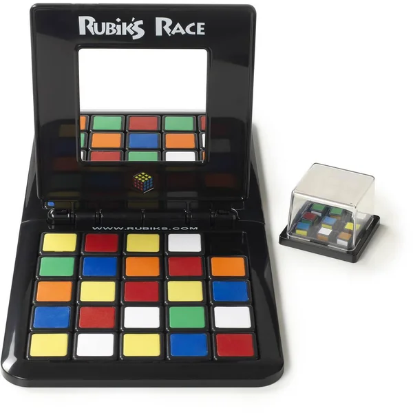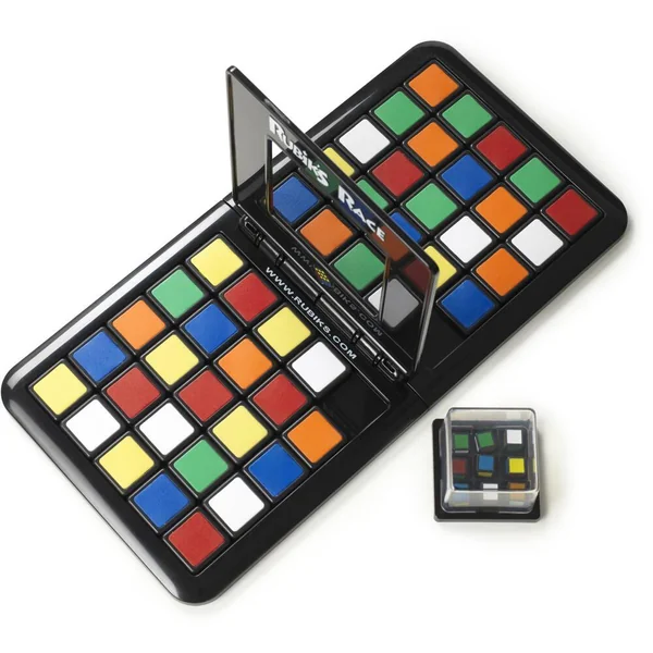 Le principe du jeu Rubik’s Race est simple : fais glisser les carrés de couleur afin de recréer, au centre du plateau, le bon motif composé de 3X3 cases et rabats le clapet avant ton adversaire ! Dans ce jeu de réflexion, inspiré du taquin, ton cerveau doit répondre au doigt et à l’œil. Fais glisser les carrés de couleur pour recréer le bon motif composé de 3X3 carrés. Sois le plus rapide ! Contenu du produit : 1 plateau Rubik’s Race, 48 dalles colorées, 1 shaker transparent et les règles du jeu.