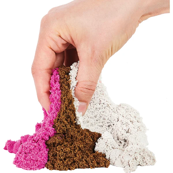 Les enfants aiment jouer au glacier dans le sable. Avec le sable cinétique, les créations de glaces réussissent toujours selon les souhaits et le sable parfumé stimule encore plus les sens que jamais auparavant. On peut modeler n’importe quoi avec ce sable.