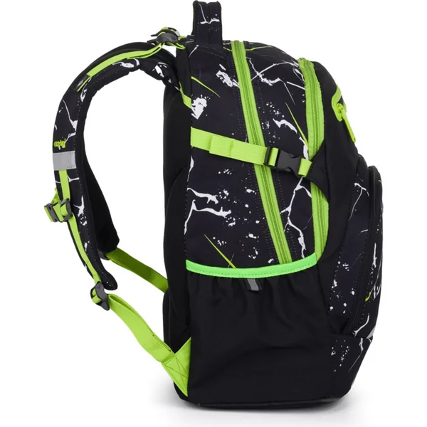 Le panneau dorsal anatomiquement conçu, les bretelles rembourrées et la sangle de poitrine réglable garantissent un confort optimal pour chaque élève. Le fond rigide empêche le sac à dos de basculer lorsqu’il est posé. Le sac est équipé de deux poches spacieuses pour tous les fournitures scolaires nécessaires. Les poches latérales élastiques offrent de l’espace pour une bouteille d’eau, facilement accessible pour maintenir l’hydratation de chaque élève. Une petite collation peut facilement être rangée dans la poche avant. Une série d’éléments réfléchissants est également présente.