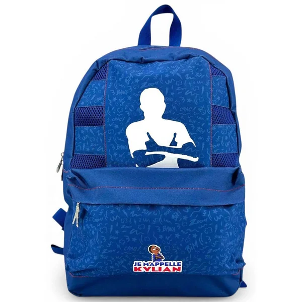 Sac à dos 43 cm Je m’appelle Kylian. Matière polyester. Dimensions : 30 x 14 x 43 cm. Avec 1 compartiment et 1 poche avant zippés. Avec bretelles et anse d’accrochage. Retrouve la silhouette blanche du célèbre joueur de football Kylian Mbappé sur le devant du sac à dos.