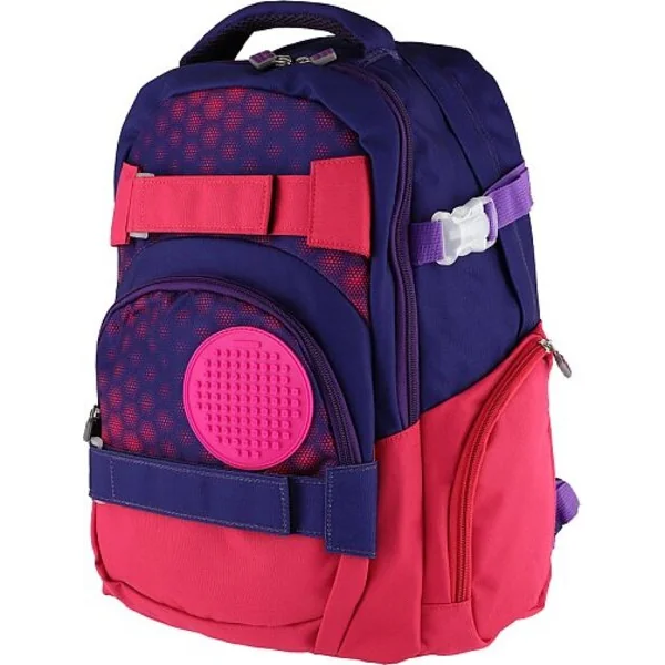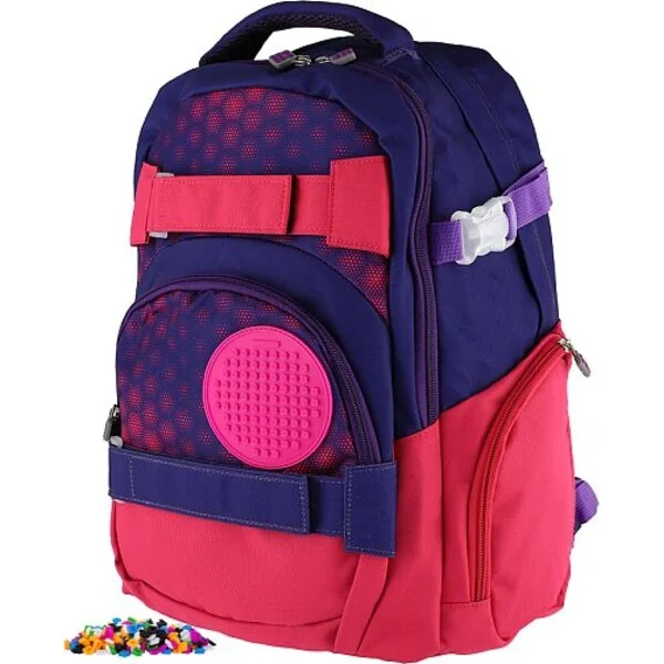 Pour un usage confortable, le sac à dos a un dos rembourré ergonomiquement conçu et un système de dos réglable permettant d’ajuster la position optimale des bretelles en fonction de la taille de l’enfant. Les bretelles sont larges et rembourrées pour ne pas s’enfoncer. À l’avant, elles ont une boucle de poitrine réglable en longueur, afin que les enfants ne les fassent pas tomber de leurs épaules. En bas, il y a une boucle de taille qui aide à alléger le sac en cas de poids élevé. Pour un transport confortable à la main, le sac est équipé d’une poignée rembourrée, et il y a une sangle solide pour le suspendre. Sur la poche avant se trouve un panneau créatif circulaire en silicone PIXIE CREW unique de couleur rose.