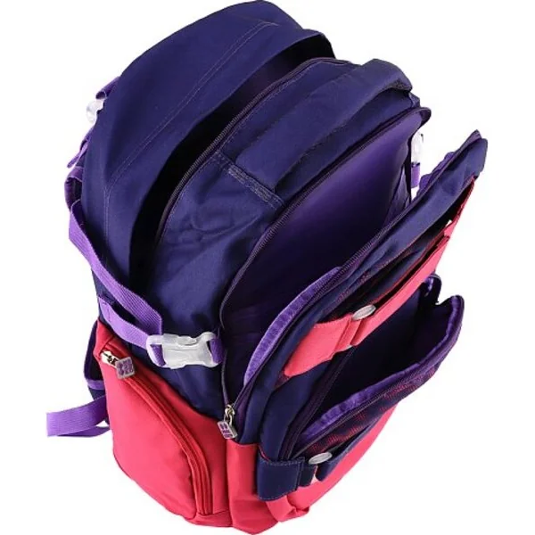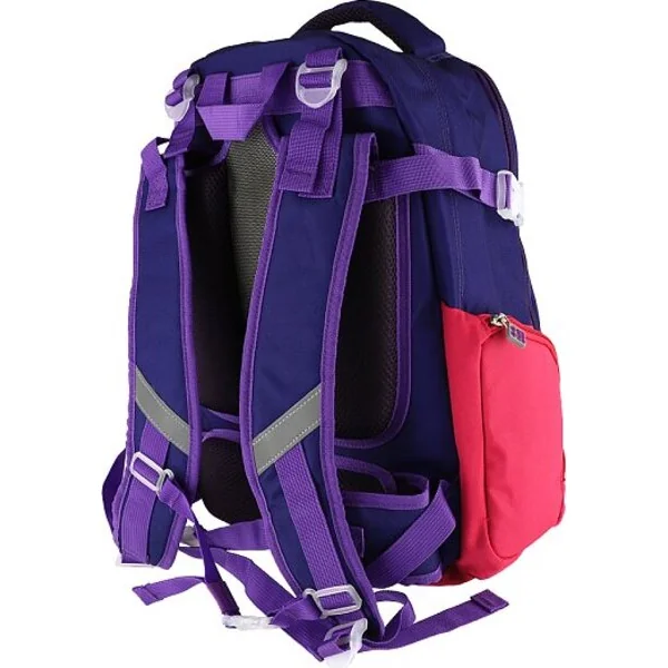 Le sac dispose de trois compartiments spacieux et séparés. Dans le compartiment principal, qui se trouve le plus près du dos, il y a une poche rembourrée pour un ordinateur portable jusqu’à 15”, cette poche se ferme avec du velcro. Le grand compartiment est adapté pour des livres, des cahiers et d’autres documents au format A4. Dans le compartiment du milieu, il y a un petit organisateur pour les petites affaires et les fournitures quotidiennes. Ce compartiment peut contenir des cahiers au format A4. La poche avant est au format A5. De chaque côté du sac à dos, il y a de petites poches fermées par une fermeture éclair. Dans ces poches, il est possible de placer une bouteille ou d’autres petites choses que vous souhaitez avoir à portée de main.