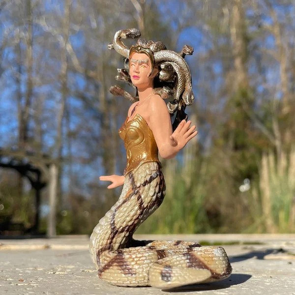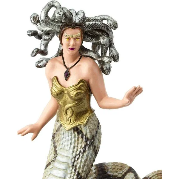 Personnage mythique avec des traits mélangés d’homme et de serpents à la place des cheveux. Elle est connue pour sa capacité à paralyser par le regard ou par son pouvoir mortel.