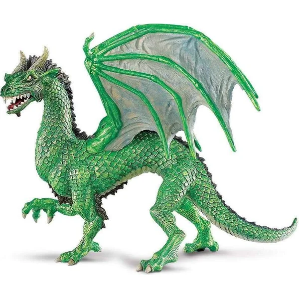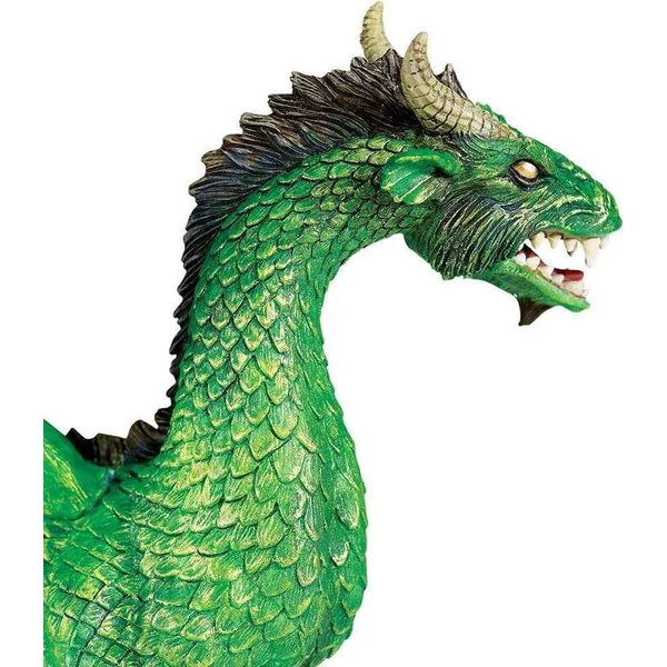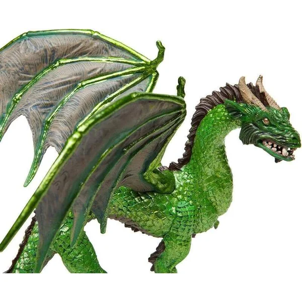 Taille et couleur : Ce dragon vert foncé, mesurant 6 pouces (environ 15,2 cm) de long et 5 pouces (environ 12,7 cm) de haut, a des accents argentés et noirs avec des ailes grises époustouflantes semblables à celles des chauves-souris.