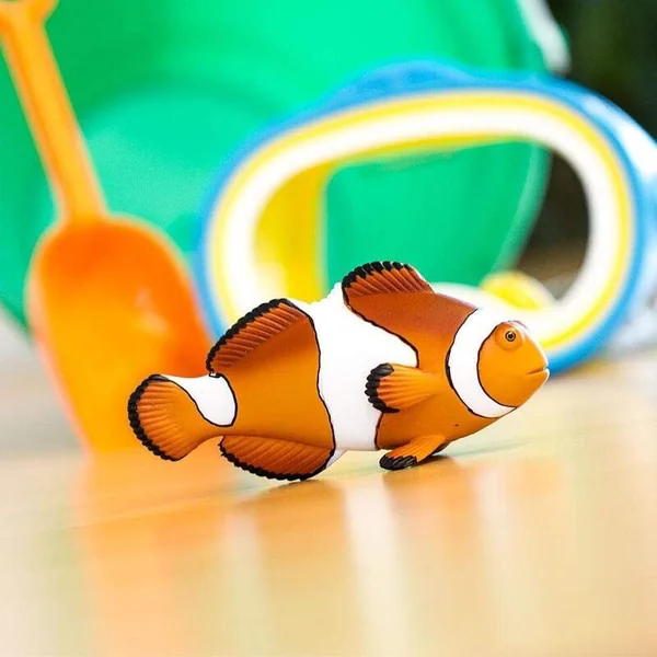 Poisson tropical de mer avec des bandes orange et blanches. Il vit en symbiose avec des anémones de mer qui le protègent des prédateurs.