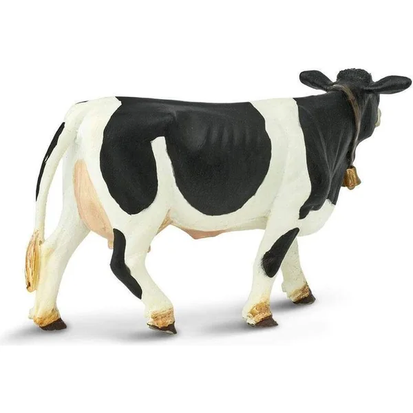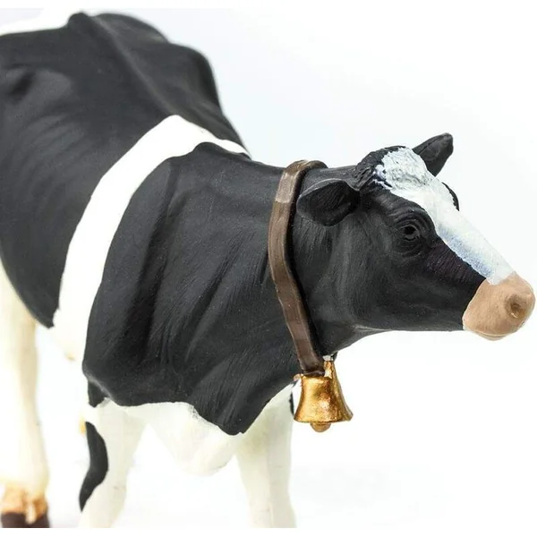 Le nom scientifique est Bos taurus. Cette vache de race holstein-frison, avec un collier et une cloche, est prête à entrer dans la laiterie. Avec son visage intelligent et sa forme réaliste, cette figurine ressemble exactement à un vrai.