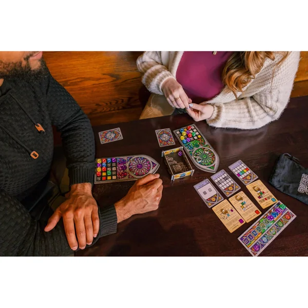 - Sélection stratégique des vitraux : Plongez dans l’univers de Sagrada où les joueurs sélectionnent stratégiquement des morceaux de verre, représentés par des dés. Chaque mouvement doit être mûrement réfléchi, car chaque placement de dé contribue à la beauté globale de votre vitrail.