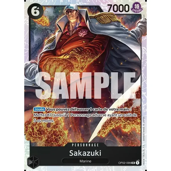 Découvrez Sakazuki (prb01OP02099), une carte Super Rare de l’extension The Best. Idéale pour compléter votre collection, cette carte Super Rare plaira autant aux collectionneurs qu’aux joueurs.