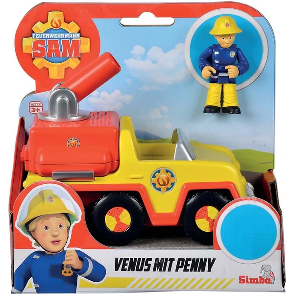 Mini véhicule 17cm Sam le Pompier représentant le pick up Vénus. 1 figurine articulée représentant Penny incluse.