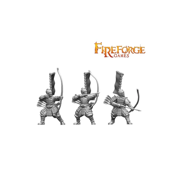 La boîte « Samurai Shooters » contient 24 figurines en plastique de samouraïs armés de Yumi ou Teppo. Figurines à l’échelle 28mm et vendues non assemblées et non peintes.