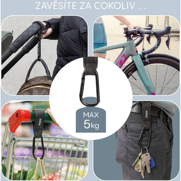 Facilitez vos déplacements quotidiens avec la sangle multifonctionnelle avec crochet Deluxe ! Grâce à une installation simple avec du velcro, elle fixe solidement le sac à langer, le sac à main ou le sac de courses sur la poignée de la poussette. Le crochet en métal robuste peut facilement supporter des objets plus lourds et le design universel assure la compatibilité avec tous les types de poussettes et de chariots de courses.