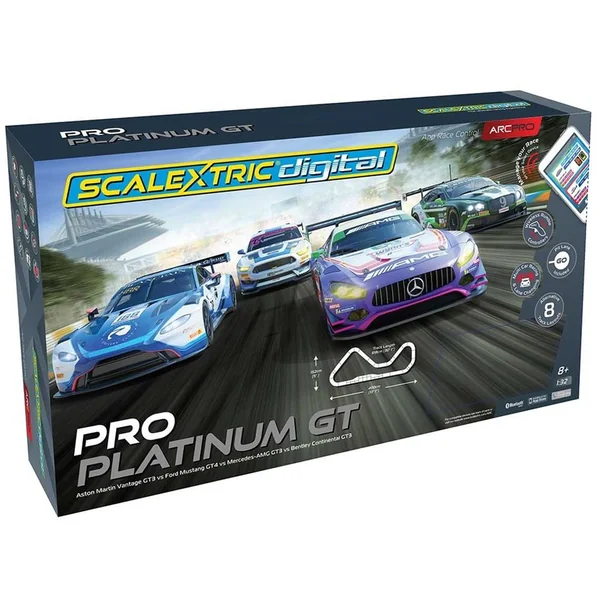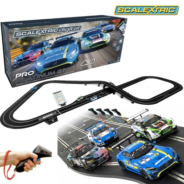 Circuit Scalextric ARC Pro Sunset Speedway Set – C1388 Circuit électrique scalextric avec jusqu’à 6 voitures sur les rails au même moment afin de réaliser des courses endiablées et reproduire des scènes mythiques des plus grandes courses automobiles. Grâce à ce circuit électrique Scalextric Digital ARC Pro Sunset Speedway Setvous allez pouvoir vous affronter sur une piste de plus de 9 m de long en développé et grâce a son système digital vous allez pouvoir vous doubler et passer en première position. Ce Circuit Arc Pro scalextric sunset speddway est en version digital c’est à dire que vous pourrez chager de voies et controlé vous seul votre voiture. Le mode ARC chez Scalextric : un control et une simulation de course réglable directement sur votre tablette ou votre smartphpne grace à l’application ! Caractéristiques du Circuit Scalextric ARC Pro Sunset Speedway Set – C1388 Système Digitale Une expérience de courses puisque Elektriks vraiment exceptionnel, choisissez vous-même votre type de course comme par exemple des courses rapides, des grands prix, de l’endurance, des tournois, des courses drague ou encore un mode arcade. Choisissez également vos conditions de course avec une météo changeante ou toutes ces autres caractéristiques : Jusqu’à 11 tracés de pistes possibles Contenu du Circuit Digital ARC Pro Platinum GT : – Le circuit |