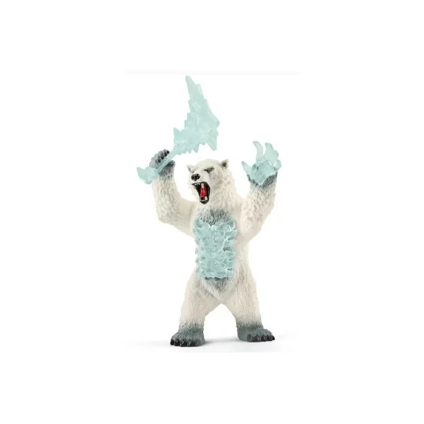 Fort comme un ours et froid comme la glace : l’Ours du blizzard des Eldrador Creatures de Schleich possède plusieurs armes qui lui permettent de balayer les intrus sur la glace. Il est avant tout un maître du camouflage : avec sa fourrure blanche comme la neige, l’ours polaire se fond parfaitement dans l’environnement du monde glaciaire – et prend ses ennemis par surprise. Celui qui ne court pas assez vite fera connaissance avec ses puissants bras mobiles – inutile de se débattre ! Une de ses puissantes griffes est même entièrement faite de glace – un seul coup de griffe suffit pour figer ses adversaires instantanément sur place ! Si un ennemi parvient quand même à échapper au gigantesque Ours du blizzard, il s’empare alors de son arme secrète : un piolet magique. Grâce à cet outil, l’ours peut créer une terrible tempête d’innombrables particules de glace, qui renverse tous les ennemis avec son souffle glacial. Attaquer l’Ours du blizzard est presque inutile : sa cuirasse en glace résiste à toutes les attaques ! Avertissement De Sûreté Ne convient pas aux enfants de moins de trois ans. Attention! Petites pièces susceptibles d’être avalées. Risque d’étouffement.
