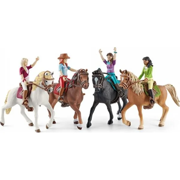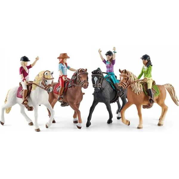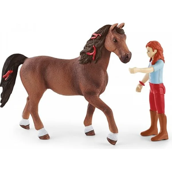 La rousse Hannah & Cayenne de Schleich® Horse Club forment une équipe invincible. Elles partent ensemble pour chaque aventure ! La figurine entièrement articulée de Hannah peut non seulement se tenir debout, mais elle peut aussi plier ses jambes pour s’asseoir sur son hongre Cayenne. L’équitation western est une passion pour Hannah. Avant chaque balade, elle selle elle-même son hongre. Le bracelet rouge qu’elle porte au poignet est le signe d’une profonde amitié entre les amies du Horse Club.