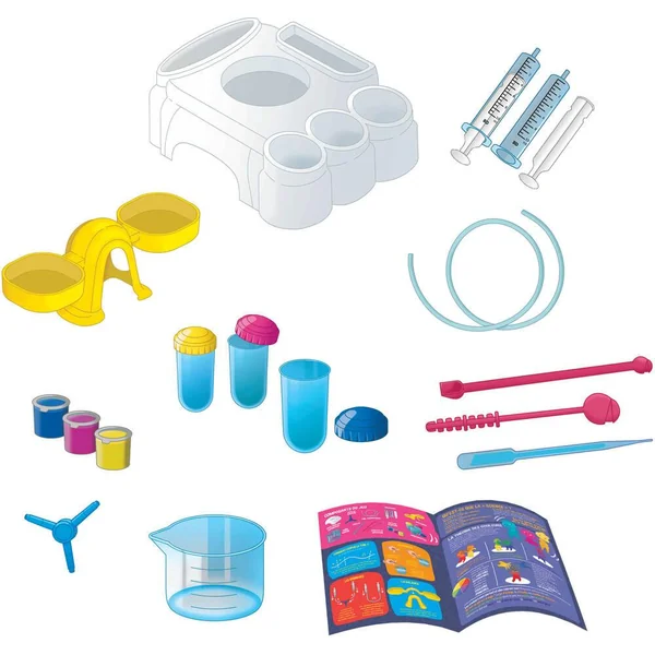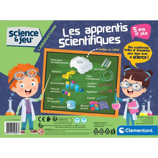 Un coffret multisensoriel pour accompagner les plus petits dans leurs premiers pas vers le monde des sciences. De nombreuses expériences pour jouer avec les couleurs, les poids et les mesures, et pour créer de nombreuses solutions en compagnie d’amusants savants qui guideront l’enfant au fil des activités. Un laboratoire avec des composants étudiés spécialement pour que l’enfant puisse être autonome dans les différentes expériences de jeu. Par quelques expériences simples, l’enfant pourra découvrir les propriétés des couleurs primaires, les mesures des liquides et des solides, les propriétés de l’eau et le mélange.