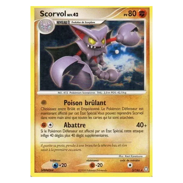Découvrez Scorvol (la005), une carte Pokémon de l’extension Eveil des Légendes, provenant du bloc Diamant & Perle. Idéale pour compléter votre collection, cette carte Holo Rare plaira autant aux collectionneurs qu’aux joueurs.