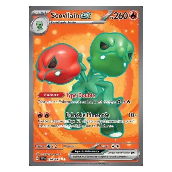 Découvrez Scovilain (ssp216), une carte Pokémon de l’extension Étincelles Déferlantes, provenant du bloc Écarlate & Violet. Idéale pour compléter votre collection, cette carte Ultra Rare plaira autant aux collectionneurs qu’aux joueurs.