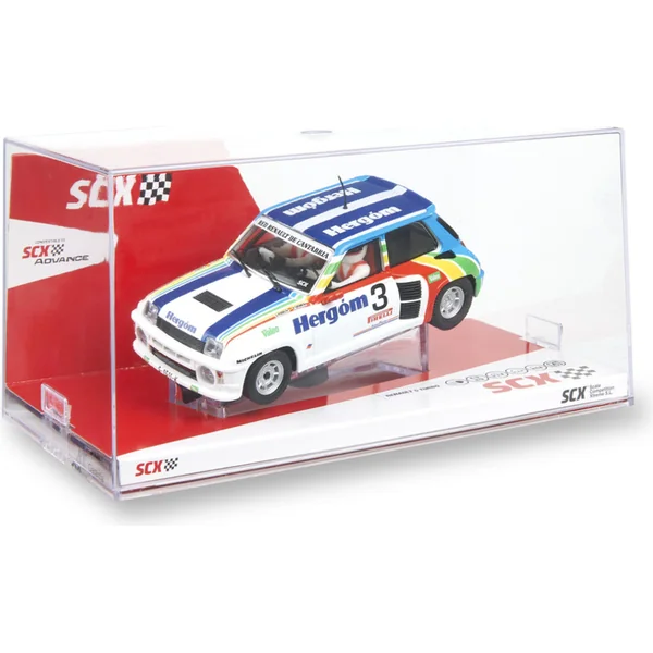 Voiture de circuit SCX Original Renault 5 Turbo Puras à l’échelle 1:32, pour circuits analogiques SCX Original. La voiture est équipée de lumières LED.