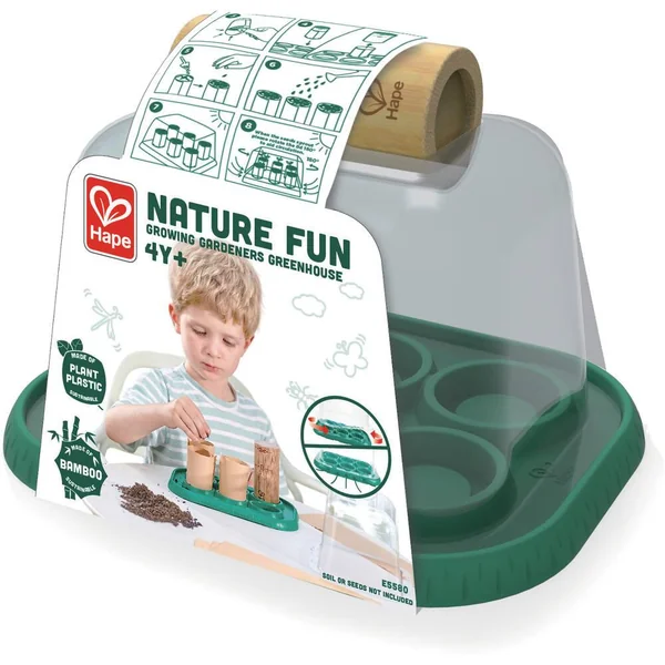 Jouet écologique entièrement vert fabriqué à partir de bambou et de bioplastique durables. Utilisez le moule en bambou inclus pour créer de petits vases en papier pour vos graines. Le couvercle transparent aidera à garder vos graines au chaud et permettra à la lumière de les atteindre. Vous pourrez aussi observer facilement vos plantes grandir sans interrompre leur processus. Lorsque les plantes sont assez grandes, vous pouvez les retirer de votre serre et les planter à l’extérieur.