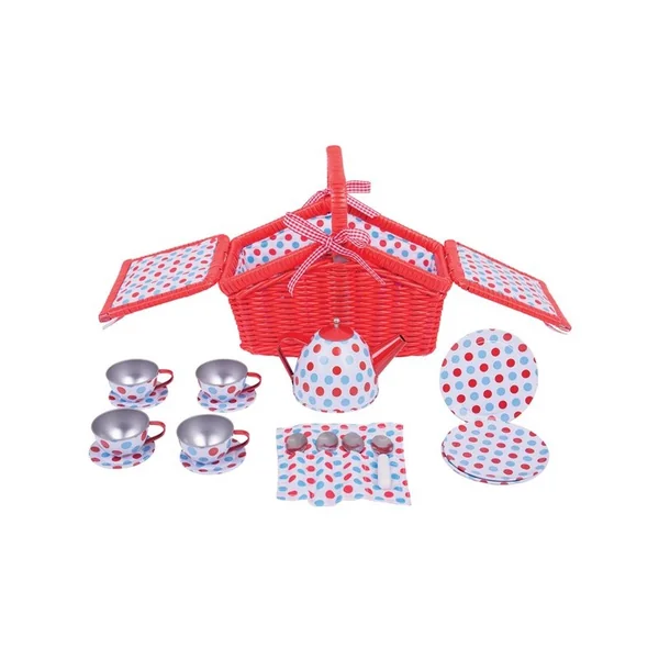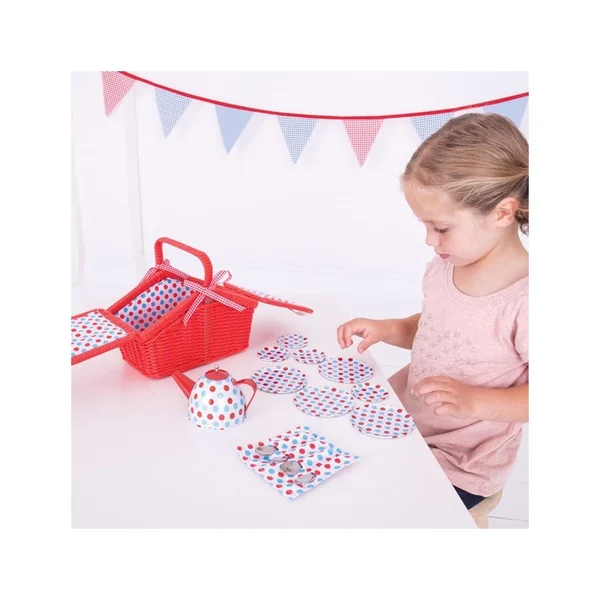 Le service à thé pour enfants comprend tout ce dont votre tout-petit a besoin pour organiser le goûter parfait pour ses amis et sa famille. Le panier de pique-nique en osier rouge en fait un excellent compagnon de voyage et permet à votre petit hôte de s’assurer que le service est rangé en toute sécurité !