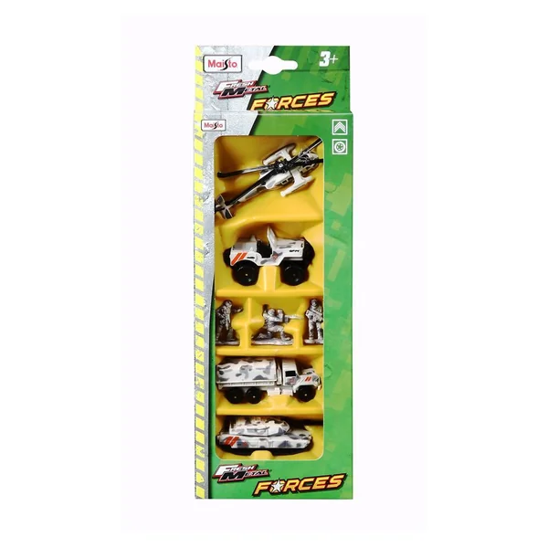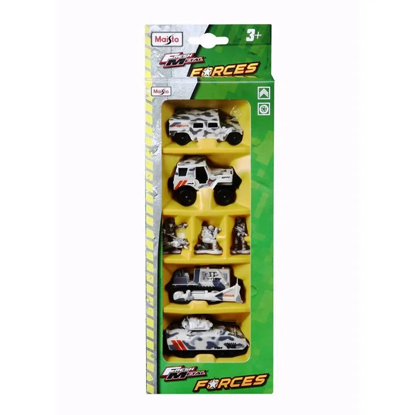 Set comprenant des véhicules à roues libres et 3 militaires en métal et en plastique.