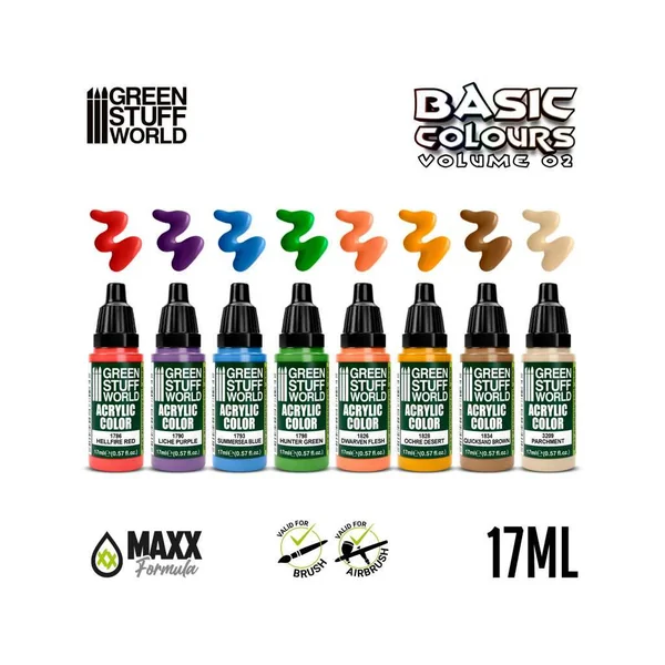 Ce set contient 8 flacons de 17ml de peinture à base d’eau sans latex. Bien agiter avant usage. Comprend une bille de mélange en acier inoxydable.
