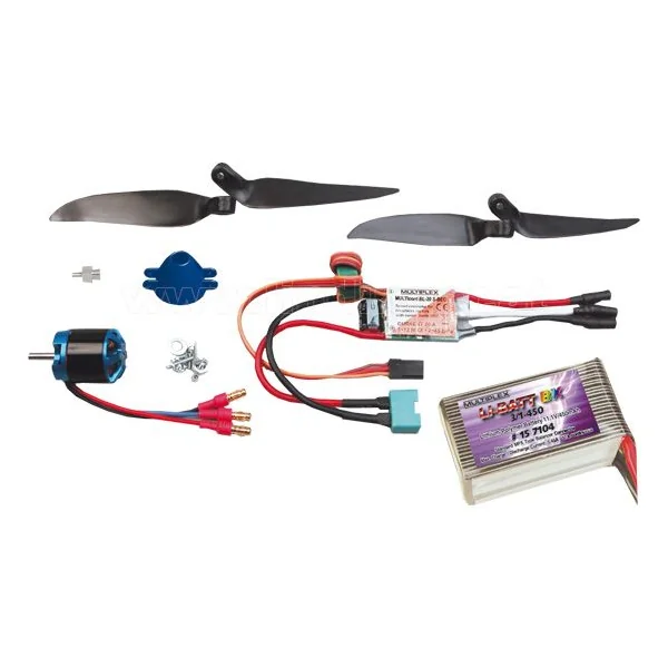 En changeant simplement les pales repliables de l’hélice, vous déterminez vous même le taux de montée et la vitesse du modèle. Consommation avec 3S LiPo et hélice à pales repliables fournie 7″ x 4″: env. 5,5 A. Consommation avec 3S LiPo et hélice à pales repliables fournie 8″ x 5″: env. 7,5 A.